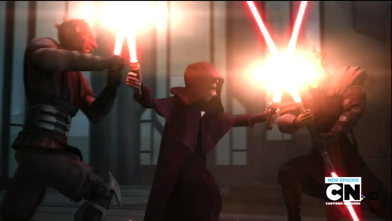 The editing of the final battle shapes an incredibly cinematic experience, arguably wasted on Saturday morning. We cut from flying Mandalorians to Sith vs. Sith vs. Sith to Obi-Wan in Mandalorian armor with a lightsaber just attacking stuff all over the place. The final six minutes of the episode is epic in scope, showcasing a planet collapsing upon itself while Darth Sidious (the late Ian Abercrombie, to whom the episode is dedicated) cleans up his mess with the Maul brothers and shows the audience why these characters are right to be terrified of the Sith master. While it appears Savage Opress is killed, Darth Maul is alive and screaming as the episode ends, implying that the events of the short comic story "Old Wounds" may still be in play as Lucasfilm retcons the Expanded Universe (and film backstory) as the series barrels along to whatever conclusion exists down the road.