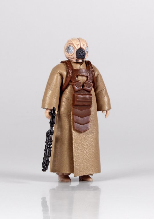 Digitally scanned from mint 3 3/4” Kenner originals, Zuckuss has been reproduced in scale to the rest of our exciting Jumbo Kenner Vintage line. No detail has been overlooked. Roto and injection molded using durable plastics, this fully-articulated jumbo figure includes a faithfully reproduced blaster.