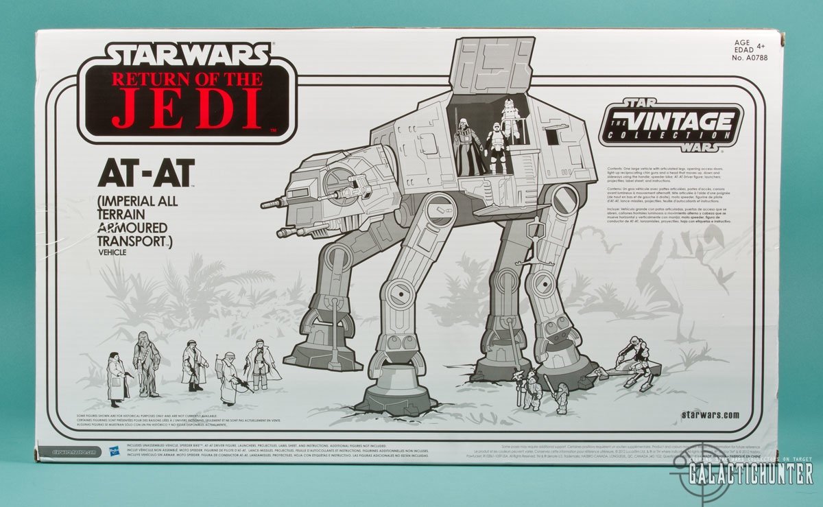 The 2010 AT-AT was released to much fanfare and acclaim for its larger size, cool electronic action features, and movie inspired playability that outshone the older and oft used Kenner mold. A ToysRUs exclusive Vintage Collection Empire Strikes Back packaged version was also released during the holiday season of that year, and quickly sold out at a $110 pricepoint.
