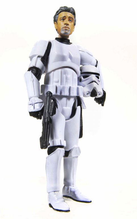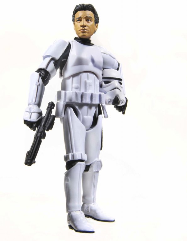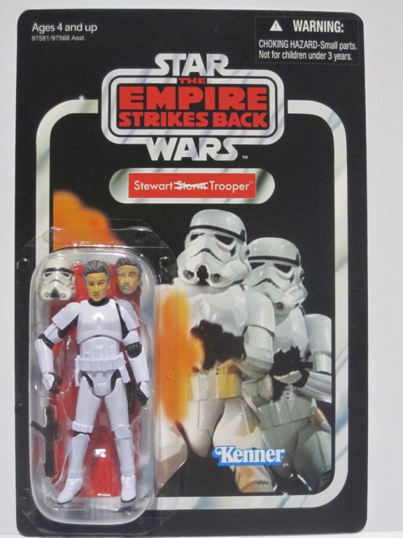 Earlier this afternoon at STAR WARS Celebration V in Orlando, The Daily Show’s Jon Stewart sat down for a one-hour interview with STAR WARS creator George Lucas in what was billed “The Main Event.” Hasbro is proud and honored to create a special gift for Stewart, which Lucas presented to him during the event – a one of a kind (NOT FOR SALE) 3.75-inch Jon Stewart Stormtrooper action figure!