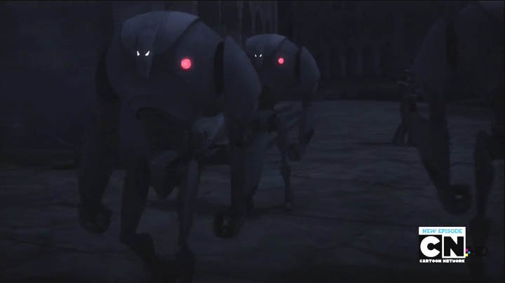 Also, is anyone else really bored with the current The Clone Wars story arc? I think the problem is all the recent multi-parters. In seasons 1 and 2, if you didn't like a story, you would be treated to a different one inside 2 weeks. Now... we're stuck here for a month. Sure, we had 4-parters like the "Legacy of Terror" arc, but that went all over the place and radically changed its tone each week. It started with "Landing at Point Rain," which followed Anakin and Obi-Wan and Ki-Adi-Mundi in a multi-pronged attack on the planet's surface. Then we got "Weapons Factory" showcasing Ahsoka and Barriss Offee doing their thing underground. And then we got "Legacy of Terror" introducing zombies, followed by a pretty swell "Brain Invaders" which built on the promise of the previous episode. Each installment had pretty distinctive looks and feels, different color palettes, and emphasis on adventure, suspense, terror, and horror, respectively. Even if you missed one of the four episodes, you were caught up to speed in the first two minutes and generally speaking, each episode can stand on its own with a fairly satisfying beginning, middle, and end. I didn't get that sense this week, or last week. (Heck, even Droids generally managed to feel like the story could be over each week.)