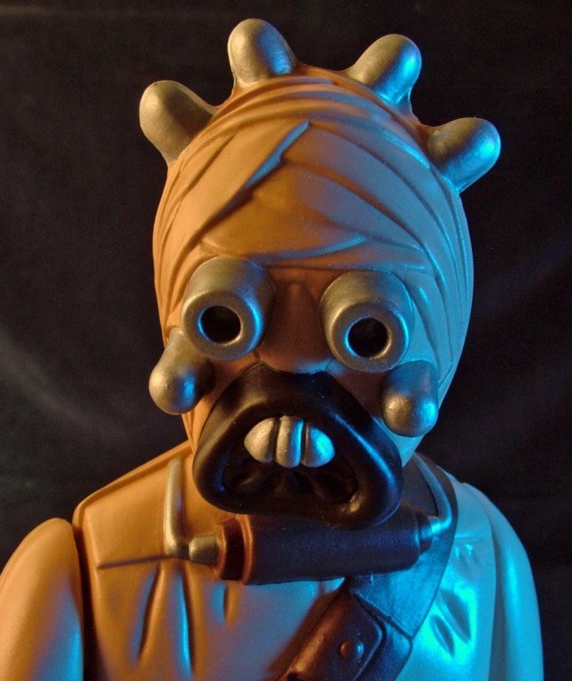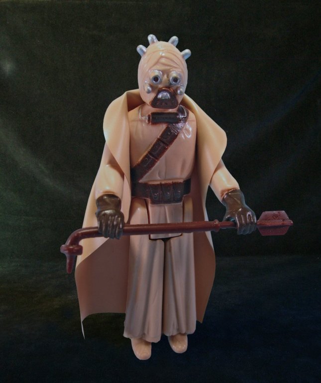 Digitally scanned from mint 3 ¾” Kenner originals and reproduced to a substantial 12” tall. Nothing has been overlooked. Roto and injection molded and made of durable plastics, this jumbo figure includes a faithfully reproduced Gaffi Stick Weapon and authentic vinyl cape, Plus it’s is fully articulated!