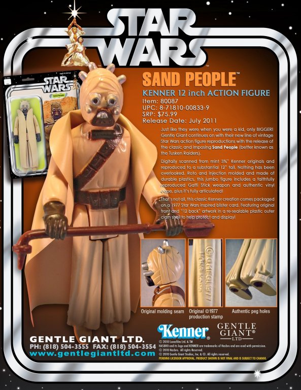 Just like they were when you were a kid, only BIGGER! Gentle Giant continues on with their new line of vintage Star Wars Action figure reproductions with the release of the classic and imposing Sand People (better known as the Tusken Raiders).