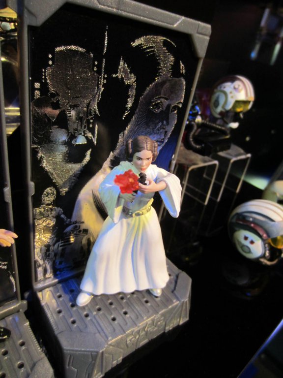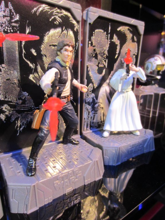 Metal! You've seen these before, but the 3 3/4-inch diorama 40th Anniversary Titanium Series figures are pretty neat. Han Solo, Princess Leia Organa, Luke Skywalker, Darth Vader, and Obi-Wan Kenobi were all shown in person to the public for the first time.