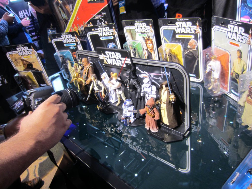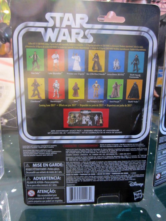 Exclusives revealed were R5-D4, said to be exclusive to Entertainment Earth (this may be subject to change) and a Celebration-exclusive foil-carded X-Wing Pilot Luke Skywalker. At this time, these 14 are the only figures in this style of packaging.