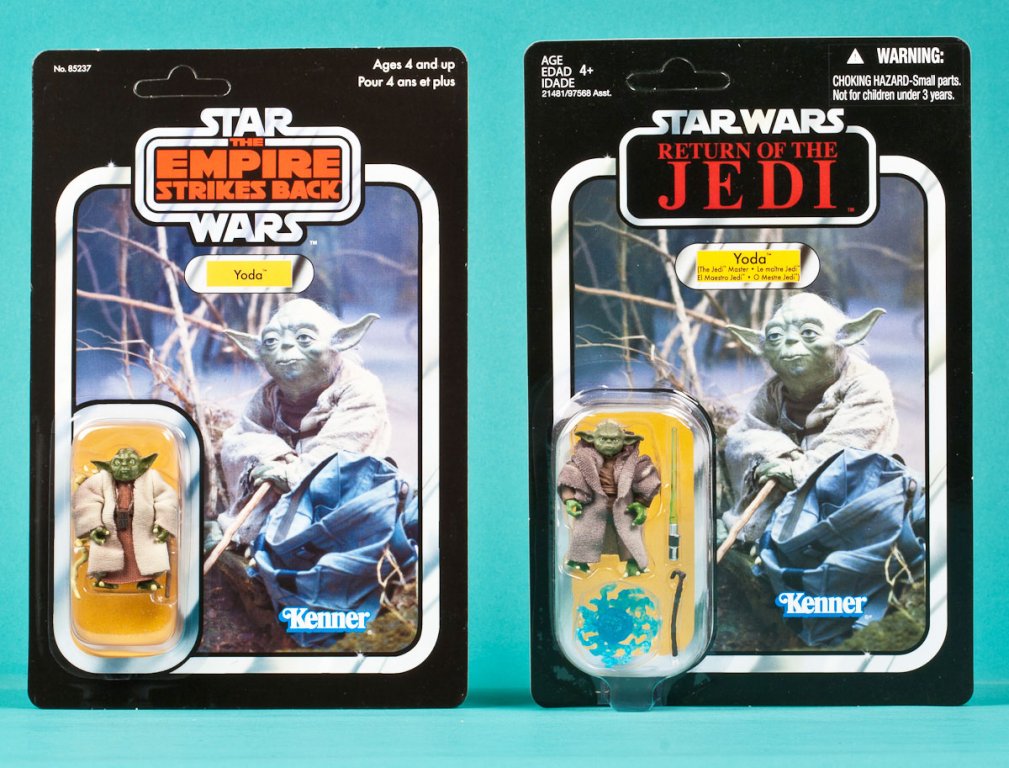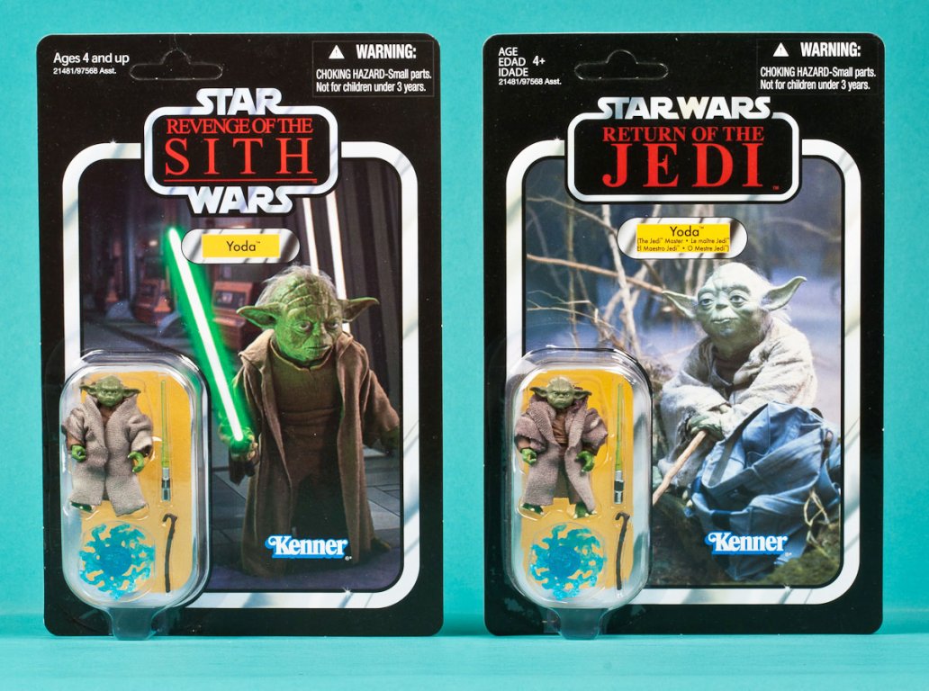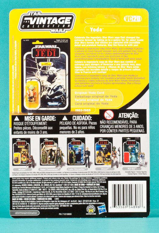 We can blame Canada for this cool carded variant of VC20 Yoda. The Jedi Master is packaged in a Return of the Jedi cardback with the iconic photo that was featured in the original Kenner release instead of the more correct, and dare we say not as iconic, Revenge of the Sith card that was distributed here domestically.