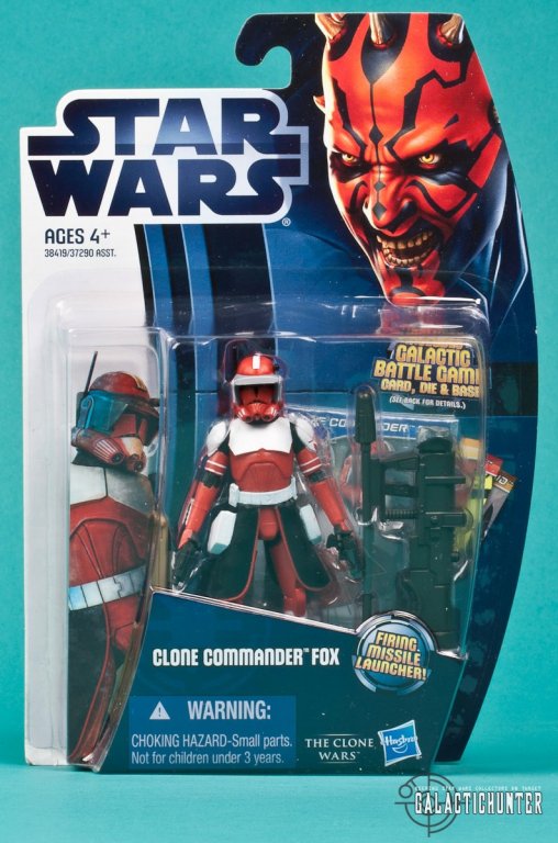 TOPPING THINGS OFF: Commander Fox is another nicely designed and aesthetically pleasing Clone warrior to join the ranks of the other Phase II Commanders released in 2012. Whether intentional or not, he has Target DNA for his color scheme and looks awesome on display with nice painted details, although there looks to be missing deco on his helmet. Unfortunately, his poseability is limited due to a lack of knee and ankle articulation that doesn't translate too well for a character meant for dynamic display. Still, make no mistake, he'll be popular on the pegs along with the other Clone Commanders with 8 articulation points. The most recent case assortment shows him being allocated 2 per case, and there will be a few collectors who will easily buy and keep 2 of of this figure. The Fox chase will definitely be a bit of a challenge from the onset.