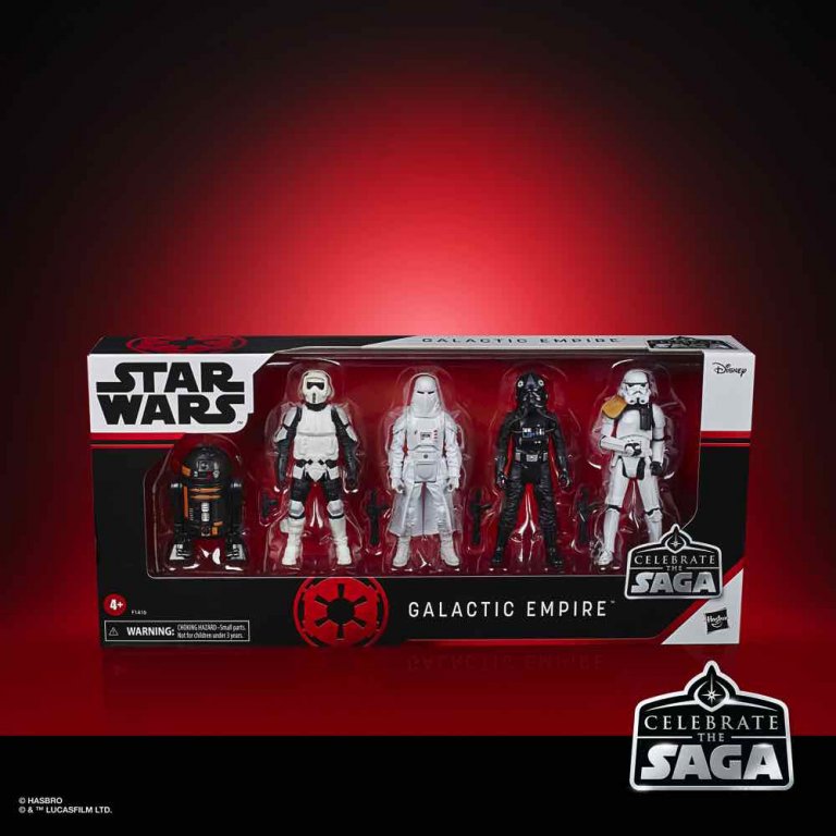Celebrate the legacy of STAR WARS, the action-and-adventure-packed space saga from a galaxy far, far away, with this STAR WARS CELEBRATE THE SAGA 3.75-INCH GALACTIC EMPIRE Figure 5-Pack! Featuring movie-inspired design and multiple points of articulation, as well as character- inspired accessories, this figure 5-pack allows fans, collectors, and kids to imagine the world of STAR WARS in action. Recreate favorite moments of excitement and intrigue from the STAR WARS Galaxy or imagine new stories and missions! The STAR WARS CELEBRATE THE SAGA 3.75-INCH GALACTIC EMPIRE Figure 5-Pack comes with characters such as TIE FIGHTER PILOT, SNOWTROOPER, STORMTROOPER SQUAD LEADER, SCOUT TROOPER action figures, featuring multiple points of articulation, and R2-Q5 figure. Includes 5 figures and 4 accessories.