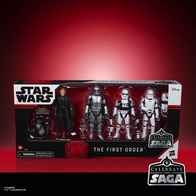 Celebrate the legacy of STAR WARS, the action-and-adventure-packed space saga from a galaxy far, far away, with this STAR WARS CELEBRATE THE SAGA 3.75-INCH THE FIRST ORDER Figure 6-Pack! Featuring movie-inspired design and multiple points of articulation, as well as character-inspired accessories, this figure 6-pack allows fans, collectors, and kids to imagine the world of STAR WARS in action. Recreate favorite moments of excitement and intrigue from the STAR WARS Galaxy or imagine new stories and missions! The STAR WARS CELEBRATE THE SAGA 3.75-INCH THE FIRST ORDER Figure 6-Pack comes with characters such as FLAMETROOPER, CAPTAIN PHASMA, GENERAL HUX, FIRST ORDER TROOPER OFFICER figures, featuring multiple points of articulation, and MOUSE DROID and BB-9E action figures.