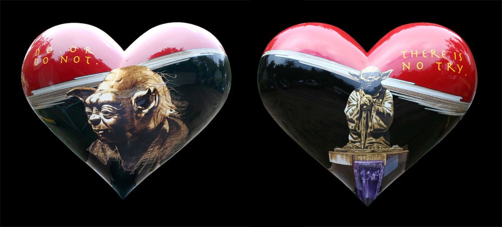 Sculptor Lawrence Noble creates a five foot tall, 400 lb. fiber glass heart design featuring Yoda and one of his more iconic phrases from The Empire Strikes Back to benefit San Francisco General Hospital and their "HEROES & HEARTS" fundraiser.