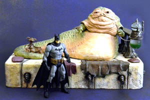 Check this out - wasting no time, Joe Amaro made a Custom Black Series Jabba the Hutt for you 6-inch figure fans! Nice! It's really big, and you can see him standing next to a DC Universe Classics-scale Batman action figure for scale.
