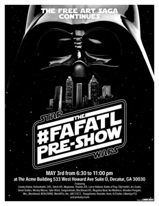Friend of me (and by association the site) @EllyFontArt let me know that a whole troupe of artists and creative types in Atlanta, GA will be doing some amazing Star Wars-themed artwork for Free Art Friday Atlanta (#fafatl). There's going to be an art show! And free stuff! What more could you want?