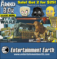 This monster comes with deploying transport rack and a host of other electronic features and includes 16 Battle Posed Battle Droids, 4 Pilot Droids, and an Obi-Wan Kenobi action figure.