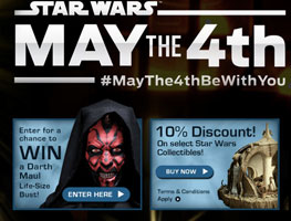 There's something else to look forward to next Friday besides green angry behemoths and hammer throwing demigods. Sideshow has announced a May The 4th Be With You special online event that will feature special discounts and offers, giveaways, and more beginning next Thursday, May 3rd.