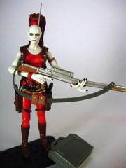 Because you asked! Aurra Sing is part of that frighteningly new Walmart exclusive wave of Discover the Force figures with awkward, sure-to-be-damaged 3D glasses hanging off the side. I don't doubt she will be the most popular figure in the wave, with an antenna (finally!) and an awesome lightsaber suitcase.