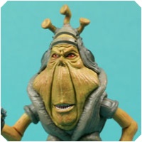 Presenting the Susan Lucci of the Fan's Choice Polls. Always the bridesmaid never the bride and all that stuff. Ben Quadinaros finally gets plasticized and in good style as a figure with good sculpt and likeness to the character and a workmanlike 12 points of articulation. He's packed with an Otoga-222 pit droid that was originally included with the 1999 Ody Mandrell figure. With the upcoming release of Mawhonic, the circle of pod racers are complete.