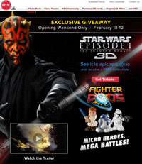 AMC Theaters will be giving away FREE Hasbro Star Wars Fighter Pods for the opening weekend (February 10-12) of Star Wars Episode I: The Phantom Menace 3D. Select theaters will also be giving away exclusive Anakin Skywalker Podracer Goggle/3D Glasses for the first 400 theatergoers. Check your local AMC Theater for local event details. Follow the link and check out the special trailer!