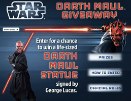 The Hasbro Darth Maul Giveaway site is now live. The grand prize is a life sized Darth Maul signed by George Lucas himself. 100 Force FX Lightsabers will be given away as a first prize. Entry forms can be found inside 2012 Vintage assortment figures and vehicles.