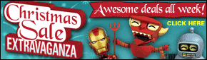 Ad: It's time for the Entertainment Earth's Christmas Sale Extravaganza! 90 items are on sale for amazingly low prices. Get great prices on Hasbro, Gentle Giant, and more... including action figures and vehicles, plus enjoy free shipping on in-stock orders over $49. If that's not enough, how about $5 and $10 off coupons? Click through for pricing, pictures, and availability.