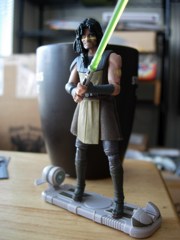 While the character has had a rich history in comic books, Quinlan Vos has only appeared in one episode of The Clone Wars, and Hasbro thought that was enough to crank out a figure. (I'm happy for this.) The figure has a lightsaber, and a speederboard for some reason. Should you grab him? Read on!
