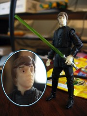 I can usually find some good in most figures, but this Luke Skywalker is easily one of Hasbro's all-time worst. And this isn't just Star Wars, but their entire plastic output. Just look at the inset of Luke's head-- you know this is going to suck, so read on!