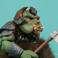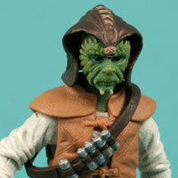 The McRib is back. It's just that this little piggy is a wonderful combination of masterfully sculpted detail and great articulation that clearly makes this the best Gamorrean Guard ever. With a cool removable helmet and a nicely done soft goods skirt, you'll want to pick up a few of these to upgrade your Jabba's Palace diorama a few notches to spectacular.