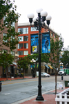 An unusually overcast and drizzly morning in America's Finest City for the warm up to the big event. A brave and dedicated few have been sitting in their lawn chairs since the wee hours of the morning as exhibitors set up inside the cavernous convention center floor. We took a few random shots of some marketing marquees and banners draped across the buildings, hotels, and lamp posts as the run up to Comic-Con begins!