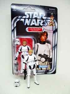 There are two releases of this Luke Skywalker (Stormtrooper, The Vintage Collection) - last year's was in a 3-pack for SDCC, and this year's is on a cardback as pictured. The blasters are a tiny bit different. The head sculpts are new for these releases, while the Stormtrooper body is pretty old. Is it worth it? Well, it's better than the last one. Read on!