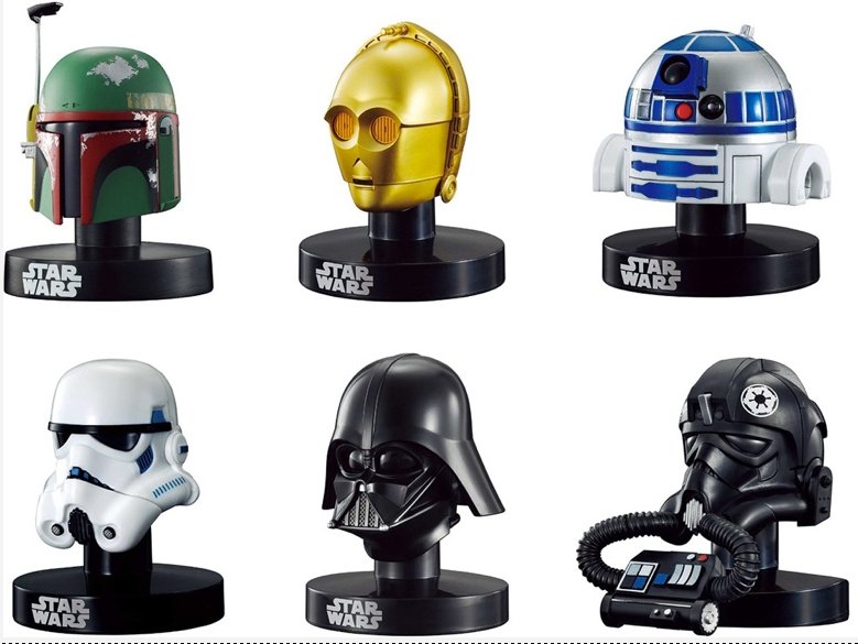 According to video game importer and delightful resource NCS, a Star Wars Helmet Replica Collection is on the way from Bandai. Check it out here. A factory sealed set of 6 boxes has miniature replicas of Boba Fett, C-3PO, Darth Vader, R2-D2, a Stormtrooper, and a TIE Fighter Pilot Helmet. Unless there's a secret helmet.NCS is selling the box for $49.90 with a June delivery estimate.