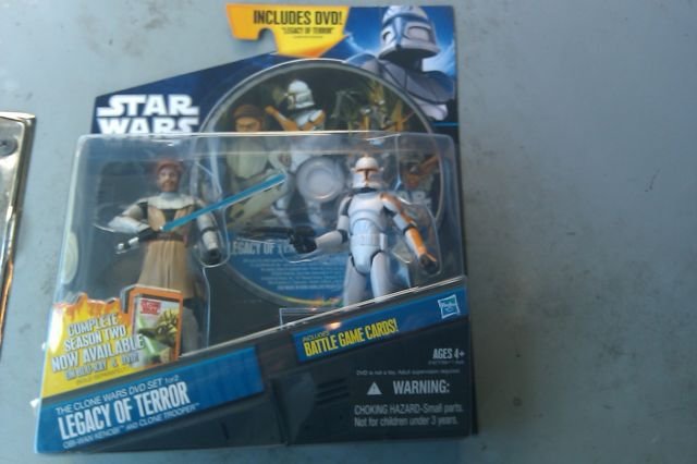 "Brain Invaders" includes Ahsoka Tano and Clone Trooper Scythe and "Legacy of Terror" has Obi-Wan Kenobi and Clone Trooper Gear Shift.