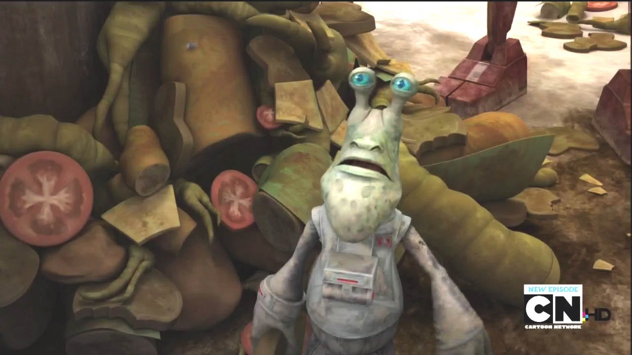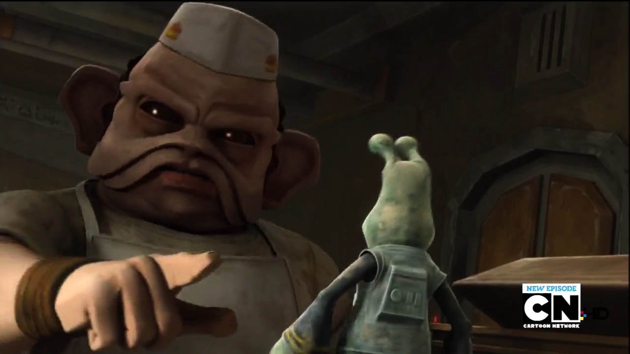 The droids were pretty much absent from the bulk of the story, and it seems like our brief tangent toward stranger places may be over again as or heroes stumble on, you guessed it, Separatist Battle Droids. No commanders, no Tactical Droids, no organic leaders... just plain ol' Battle Droids. I'm sure the reason for this was animation cost, but still, it'd be nice to see bad guys that aren't generic troopers show up. Remember Admiral Trench? Lok Durd? I don't mind villains of the week, although I guess if there are to be no new action figures of them as of late, there's really no reason to make them for the narrative when you have perfectly acceptable generic baddies to dole out week over week. I suppose Mr. Borkus took up the week's animation budget for the token new villain, and a diner owner is a much better addition to the Clone Wars galaxy. We've met killers, admirals, and warlords... but burger jockeys? We need more of those.