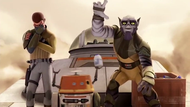 The reason our trusty crew goes in to save Unduli is because Kanan is trying to train Ezra and isn't very good at it - the show goes full-Firefly quirk mode for an amusing Jedi training sequence in which, as far as I can tell, Chopper is pelting the young trainee with milk cartons and Zeb tries to throw him off the ship. It's a little much. We get to see quite a bit of action for the break-in, which has a lot of Force fun and a couple of decent firefights.