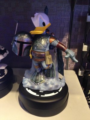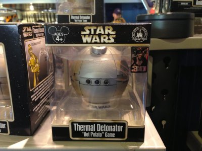 Other new items include a Donald Duck as Boba Fett statue ($99.95), a Star Wars Thermal Detonator Hot Potato game ($24.95), which is brilliant in concept and play, and new Ewok plush with Kneesaa and Chip n Dale as Ewoks.