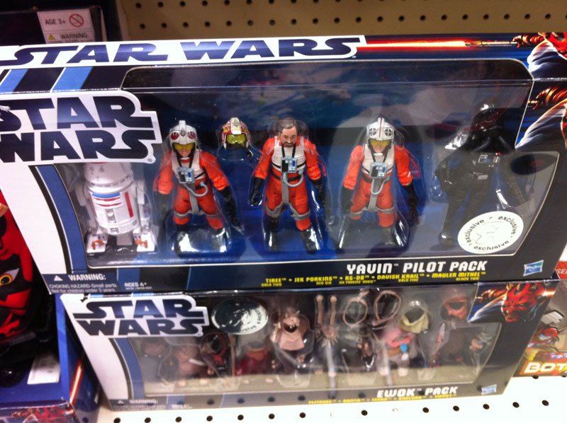 ToysRUs stores are beginning to receive the awesome new Yavin Pilots and Ewoks Packs. Each set is $39.99 each and are both fantastic with the Ewok pack being just a little more special because of a Kneesaa action figure which Adam is gushing over in his latest FOTD. The item number for both sets is 790723. They're listed online, but are available only in stores for now.