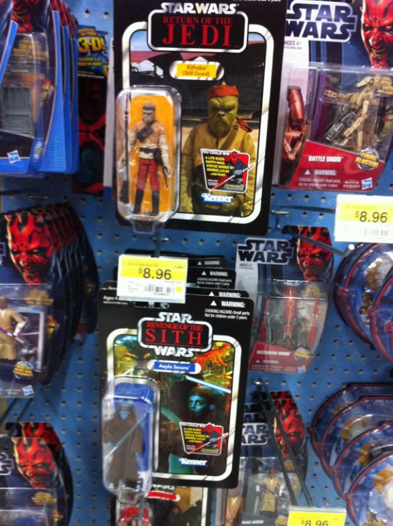 There's finally some break through after a few months of a devil's existence and lingering TPM Wave 1's as Wal-Mart is receiving shipments of Vintage Wave 4 with Dr. Evazan, Aayla Secura, and Kithaba.