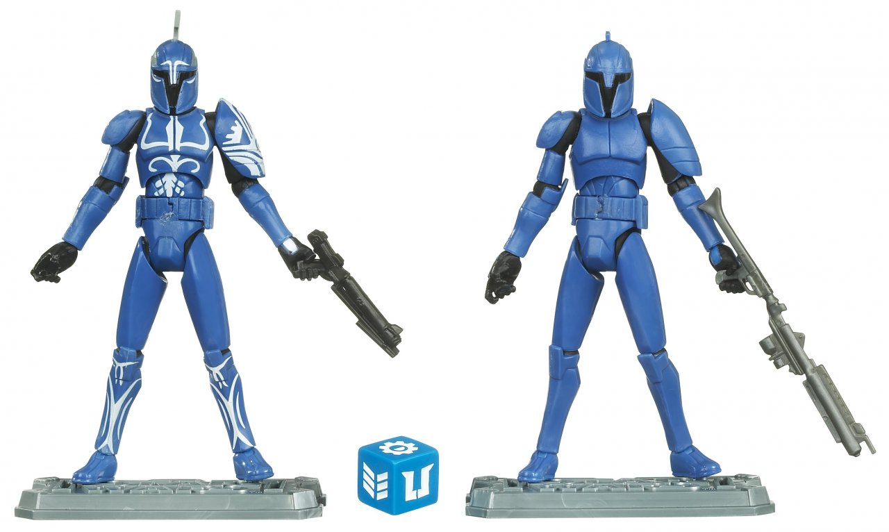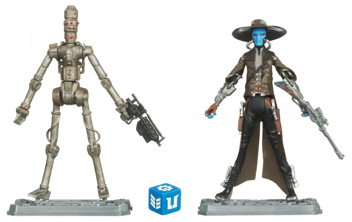 Collect both sets of these figure 2-packs from THE CLONE WARS! One set includes CAD BANE™ and IG-86™ action figures and the other includes the SENATE COMMANDO™ CAPTAIN and SENATE COMMANDO™ figures. Arm your warriors with their blaster accessories so that they’re ready to charge into combat against their fiercest enemies. Whether fighting for the fate of the galaxy or standing at attention in your collection, these awesome action figures put all of the excitement of the STAR WARS saga right in the palm of your hand! Each set (sold separately) of two figures come with blaster accessories, 2 Galactic Battle Game™ cards, 2 battle bases and game die.