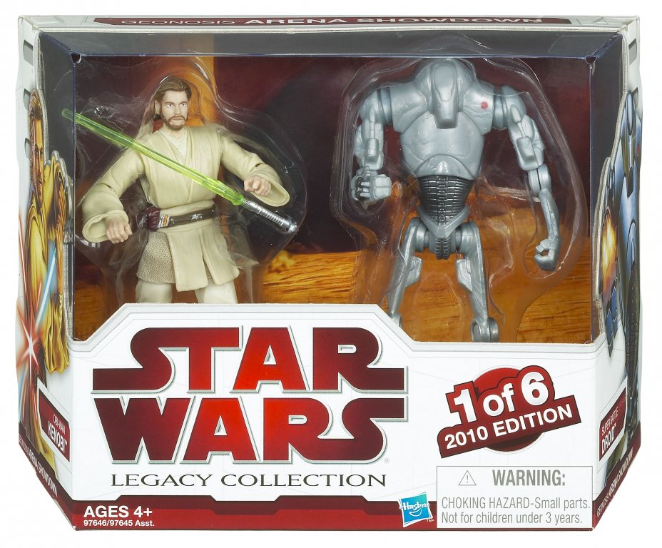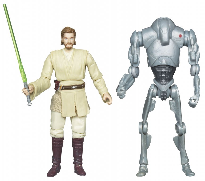 Collect all 6 of the Geonosis Arena Showdown Battle Packs! Set 1 includes OBI-WAN KENOBI™ and a SUPER BATTLE DROID™, set 2 includes RODIAN JEDI™ and BATTLE DROID™, set 3 includes ANAKIN SKYWALKER™ and DROIDEKA™, set 4 includes SHAAK TI™ and a GEONOSIAN™ WARRIOR, set 5 includes NICANAS TASSU™ and COUNT DOOKU™, and set 6 includes R2-D2™ and C-3PO™ with Battle Droid head. Each set sold separately.