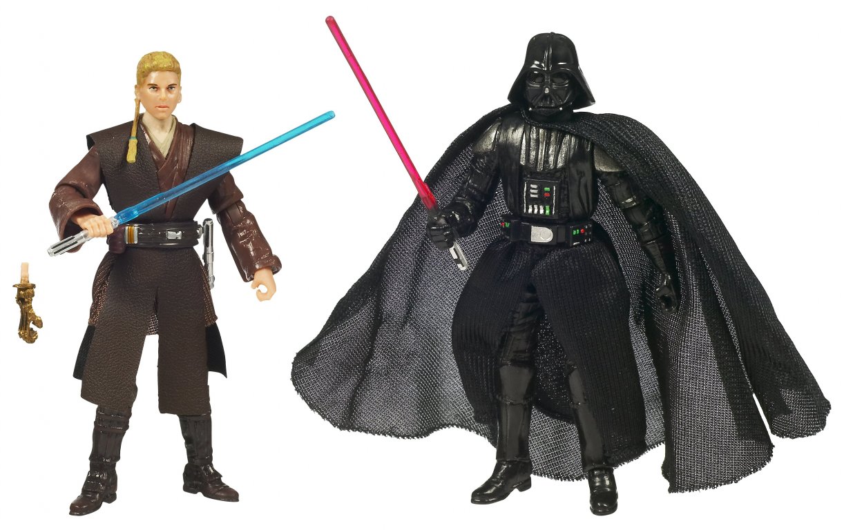 Collect all three of the LEGACY OF THE DARK SIDE figure 2-packs! In the first set, your ANAKIN SKYWALKER™ figure begins his journey as a heroic fighter, wielding his lightsaber accessory to fight for the forces of good. Your DARTH VADER™ figure is who the young fighter becomes after he has abandoned justice and given himself over to the dark side.