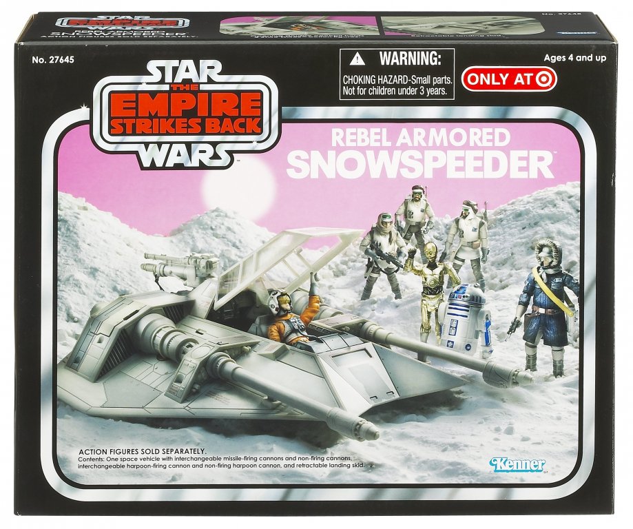 Collect a piece of saga history with both of these STAR WARS Vintage vehicles! The incredibly detailed IMPERIAL TIE FIGHTER™ and REBEL ARMORED SNOWSPEEDER™ vehicles are both modeled after the vehicles from the classic THE EMPIRE STRIKES BACK™ film and come in reproductions of the same packaging that the original vehicles were released in. The TIE FIGHTER™ features wing panel accessories and a removable cockpit seat, while the SNOWSPEEDER™ features a landing skid and interchangeable firing and non-firing cannons and harpoon cannons that add even more drama to the action. Each vehicle sold separately.