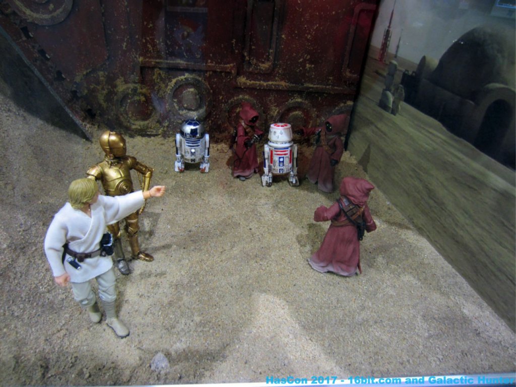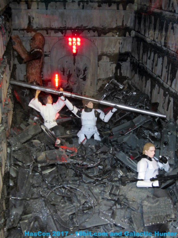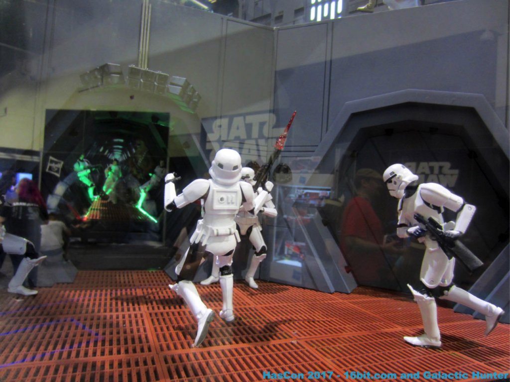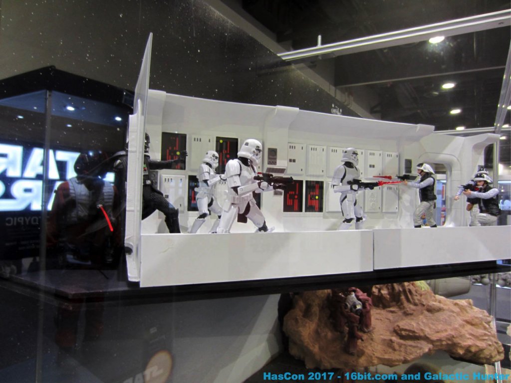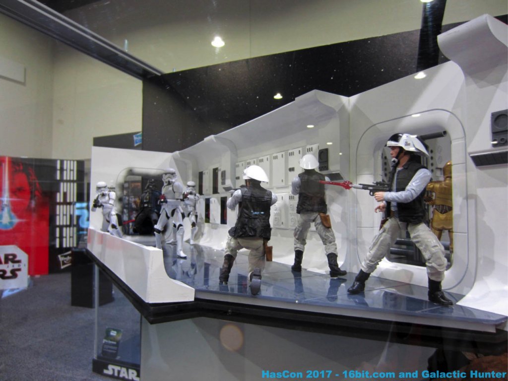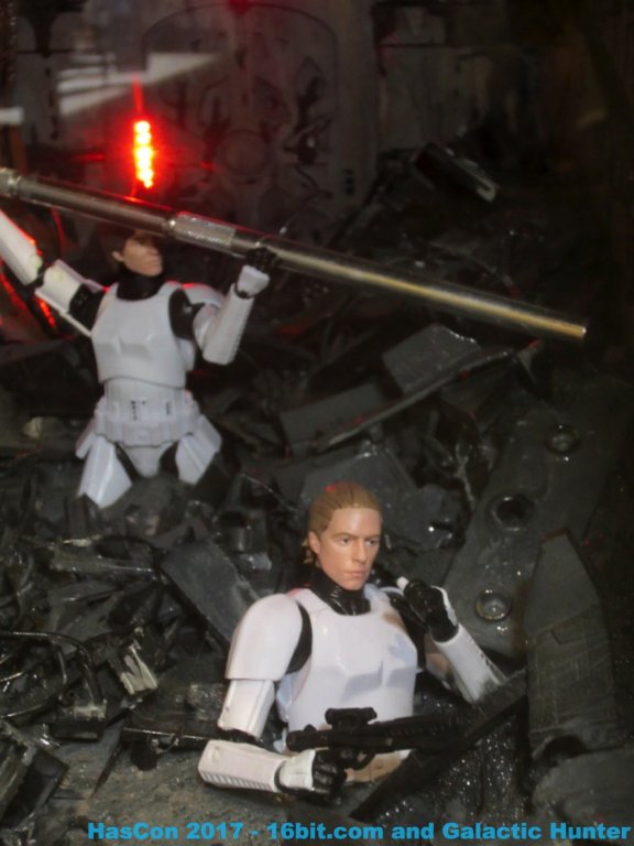 You may have seen this from San Diego Comic-Con, but it was mobbed by people in a tight booth. At HasCon, there was more space between things, so you don't have to worry about being crushed alive from all sides while trying to look at an action figure. Also notable, many figures in the diorama were customized and a Luke Stormtrooper has an alternate, wet head. I was unable to find out if it's coming out or was just a thing for the booth, but the important thing tonight is that you can see it after the jump.