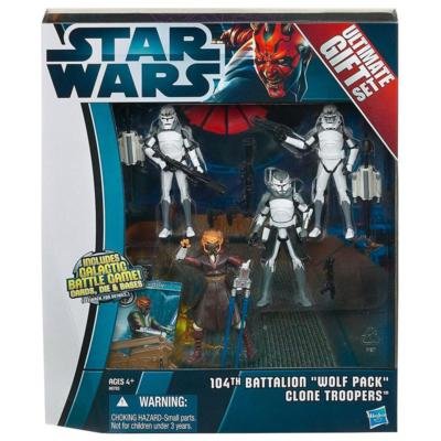 The formerly Walmart exclusive 104th Battalion "Wolf Pack" Clone Troopers Ultimate Gift Set is now available as an online exclusive at Hasbro Toy Shop for $29.99 each. The set includes Commander Wolffe, Plo Koon, Clone Trooper Sinker, and Clone Trooper Boost.