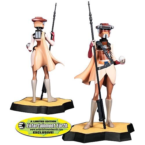 After a sneak peek at Comic-Con in San Diego, pre-orders are now up for the Entertainment Earth Exclusive Princess Leia in Boushh Disguise Animated Maquette. It's a statue, scaled to the existing classic and Clone Wars animated maquettes made by the company over the past few years.