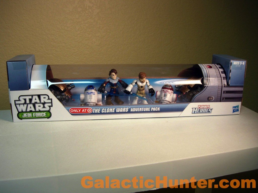 A stealth exclusive? Yup! Take note of this one, kids, because this is one of the ones you might skip and kick yourself about in about four years if the secondary market prices on Galactic Heroes are any indication. This new Jedi Force Clone Wars Adventure Pack is $14.99, in some Targets now on a special mixed Playskool/Imaginext endcap, and is-- say it with me-- just different enough to make you mad.