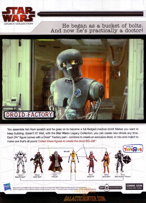 The latest Hasbro print ad features the "do these really exist?" Expanded Universe Wave exclusive, or should we say elusive to Toys R Us. The wave includes parts to build BG-J38.