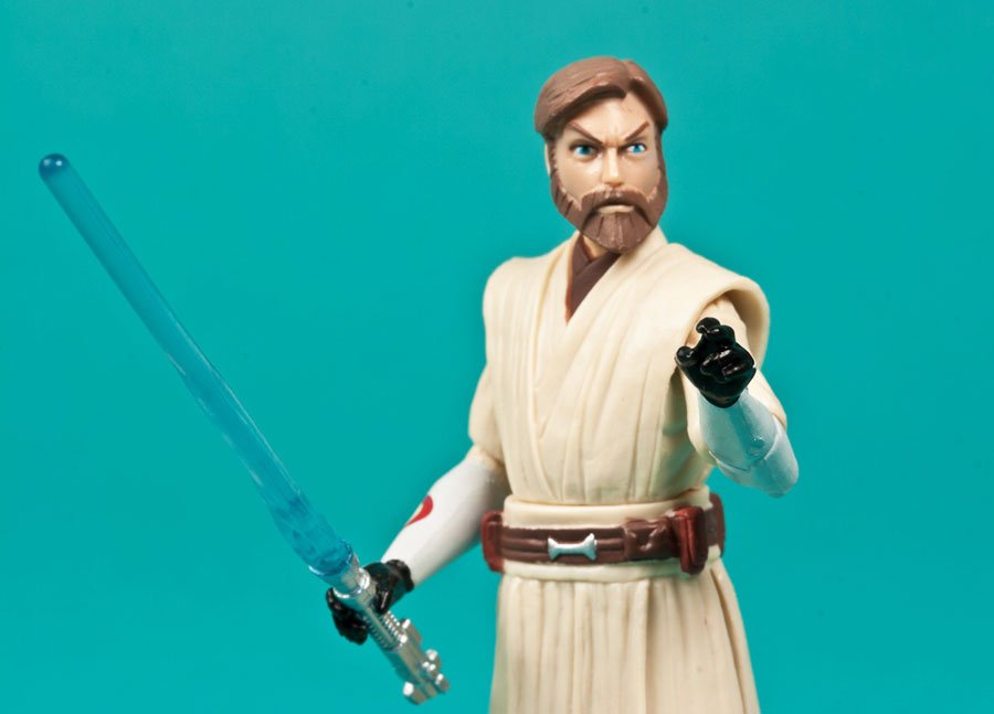 Obi-Wan's head sculpt is an upgrade over last year's smaller, slightly out of proportioned iteration and the likeness is quite good. Hasbro gave the facial expression a more serious countenance as opposed to 2008's and 2011's with overarching eyebrows so he always looks pissed and ready for battle. If you're a television mini-series viewer of the 80's and remember Thorn Birds and Shogun, yeah he does look a little like actor Richard Chamberlain. Perhaps too much Kildare and not enough Kenobi? It's still the best Clone Wars one yet.