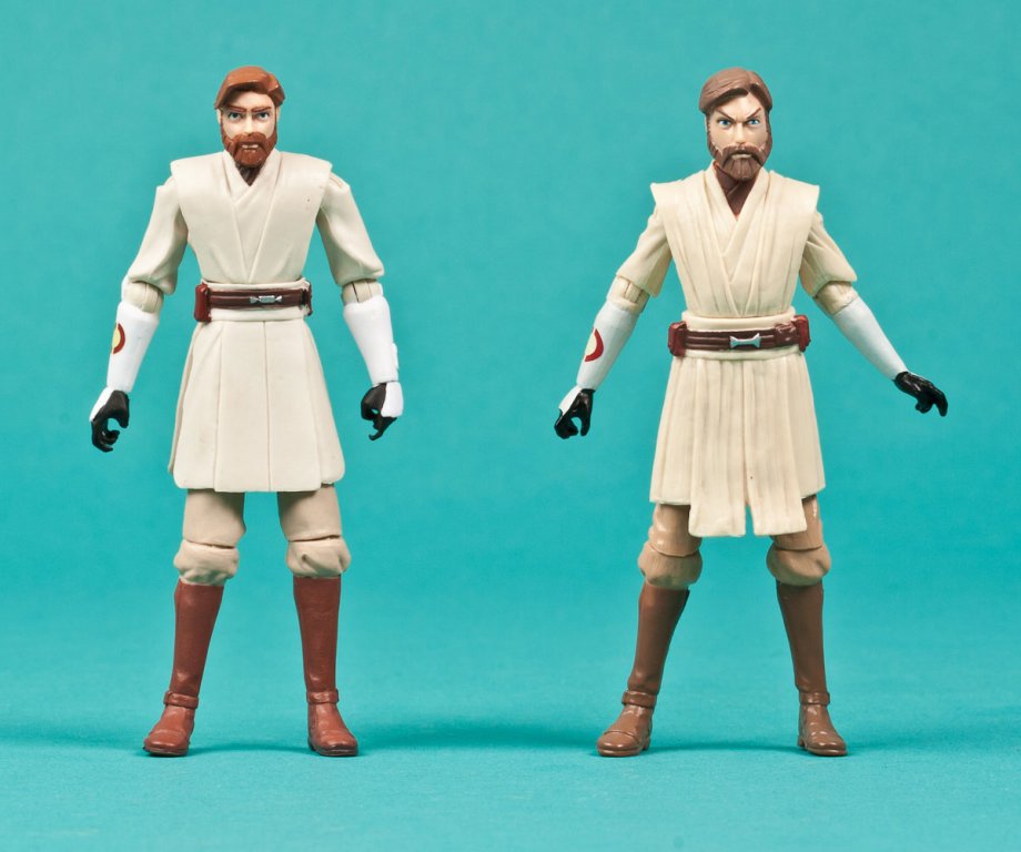 ARTICULATION: Obi-Wan Kenobi comes with 10 points of articulation that includes ball hinged shoulders and elbows and swivel hips. The 2011 figure wins out with articulation on the wrists, so there's less lightsaber poses you can manipulate and he can't hold the saber with two hands. Does less articulation hurt this excellent sculpt? Of course it does, and while you can still achieve some decent, dynamic poses, it falls short for a main character that received a great upgrade and many collectors would like to have as their basic default version of CW Obi-Wan.