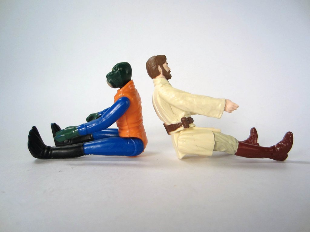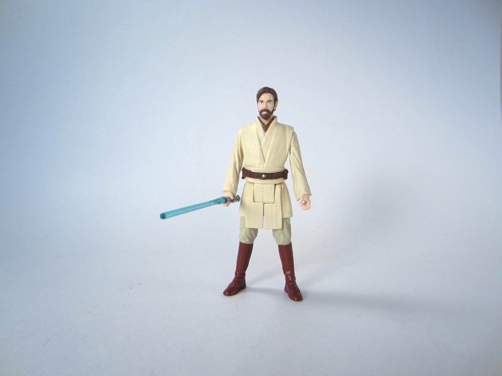 There have been dozens of Obi-Wan Kenobi figures from over the years, but the Revenge of the Sith version may be one of the most plentiful with over a dozen releases, each of which has a different accessory or other small change. This one isn't the least articulated, but it does feel simpler and retains the "1978" pose of most Kenner action figures until the 1990s. This is the first Obi-Wan Kenobi from ROTS with the ability to sit down without bending a piece of the figure out of shape, and this one stands unassisted much more easily than others. We're picturing him with the 2006 The Saga Collection release, which has 14 points of articulation and a cloth robe. It also cost about $6.99 in 2006, so that's inflation for you.