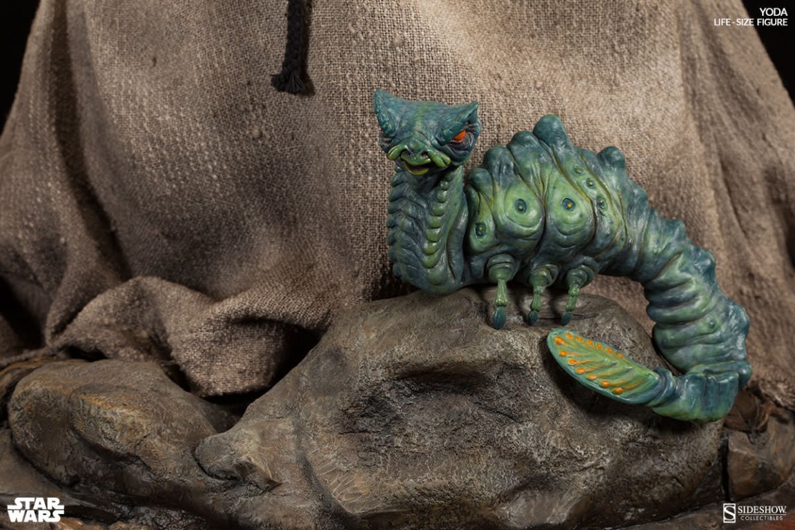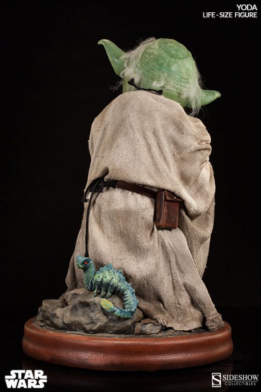 Sideshow’s artists have perfectly captured the magic of Frank Oz’s original puppet in this magnificent replica, with features so realistic that you'll expect him to spring to life at any moment. Standing 32 inches tall on a Dagobah themed environment base (complete with colorful morp critter), Sideshow’s life-size Yoda replica is a dream come true for any Star Wars collector!
