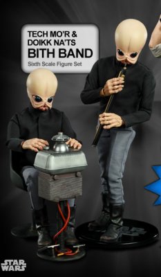 Sideshow reveals (at least in full) their first of two Star Wars exclusives for San Diego Comic-Con: A Sixth Scale figure set of Tech Mo'r and Doikk Na'ts of the famous Bith Band!