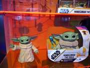 Mando roleplay masks and gauntlets were also on display, as was a Mission Fleet Mandalorian Bike with the title character and The Child.